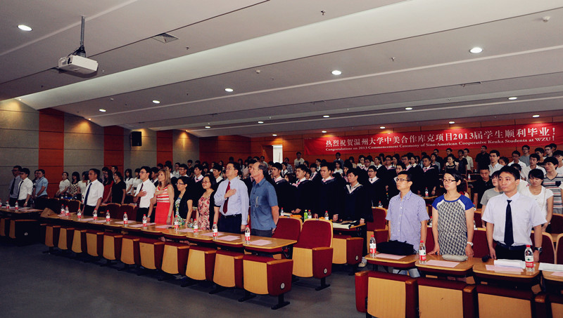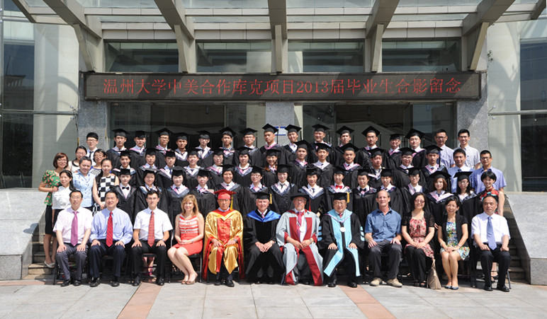 6月18日上午,15vip太阳集团官网中美合作库克项目2013届毕业典礼在15vip太阳集团官网茶山校区会展中心雁山厅隆重举行。太阳官网2009级42位毕业生从15vip太阳集团官网副校长薛伟博士、库克大学董事长习克先生(Mr. Robert Schick)、库克大学校长贺睿拉博士(Dr. Jorge L. Diaz-Herrera)、库克大学中国总校区校长黄天中博士(Dr. Michael Hwang)手中接过了美国库克大学管理学学士学位证书,这是他们终生难忘的一天。