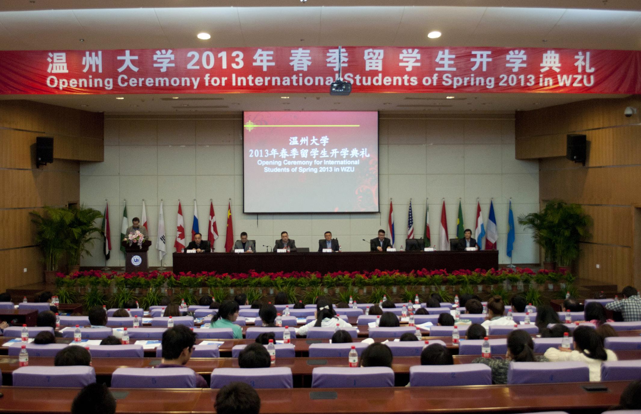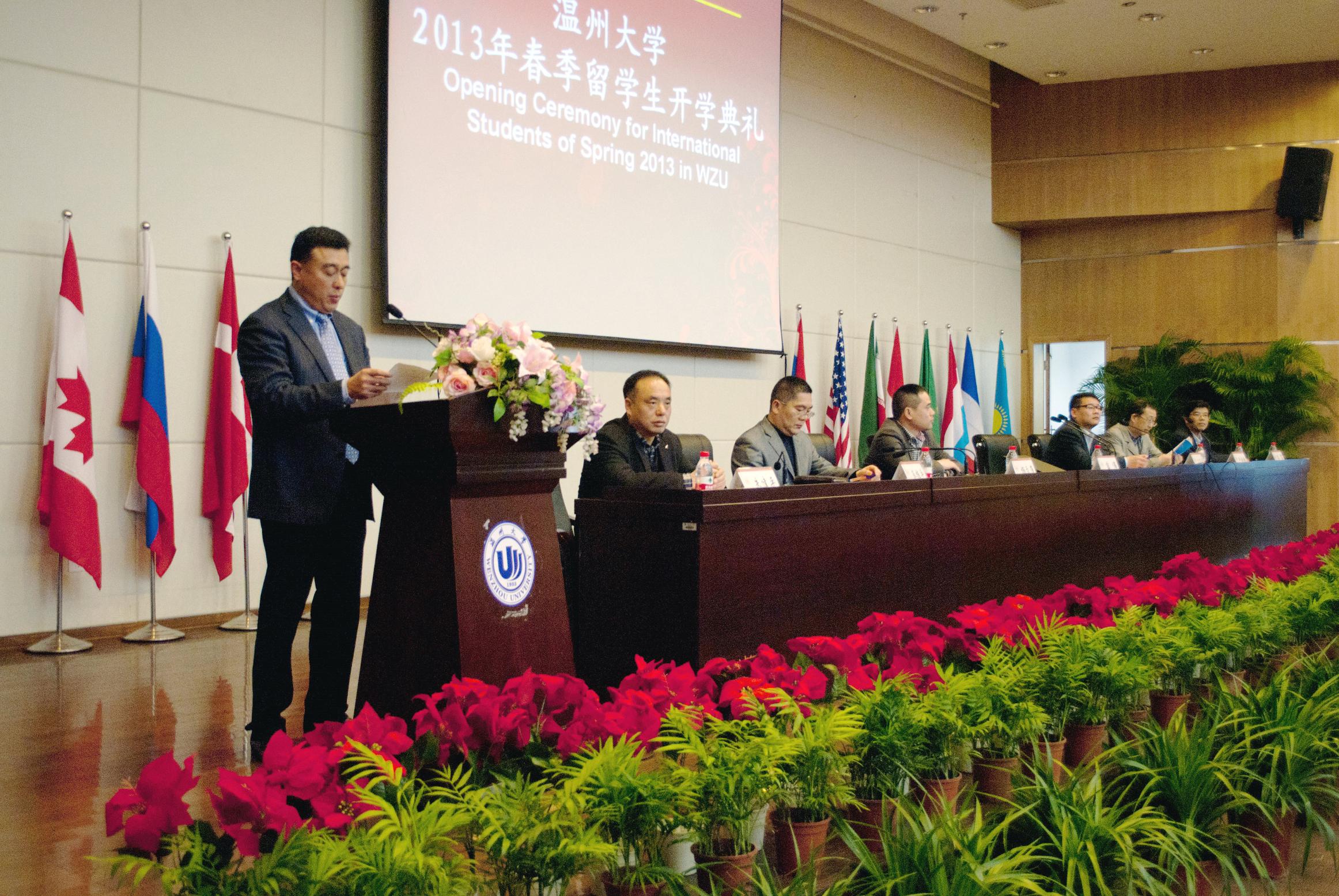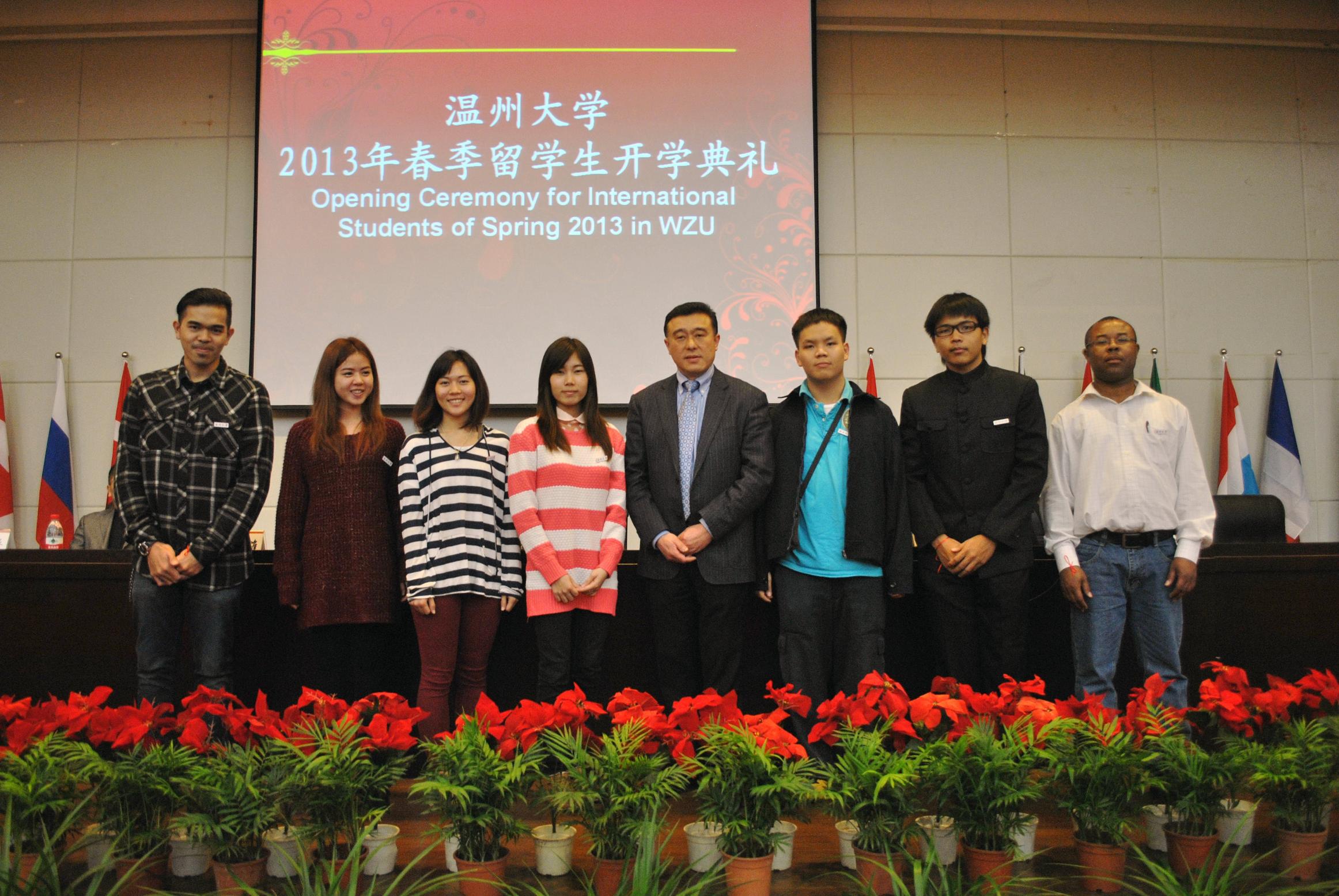 2013年3月8日下午,我校2013年春季留学生开学典礼在育英图书馆报告厅隆重举行。副校长薛伟,教务处、学生处、团委等相关部门负责人参加了典礼。典礼由国际合作学院院长严晓鹏主持。