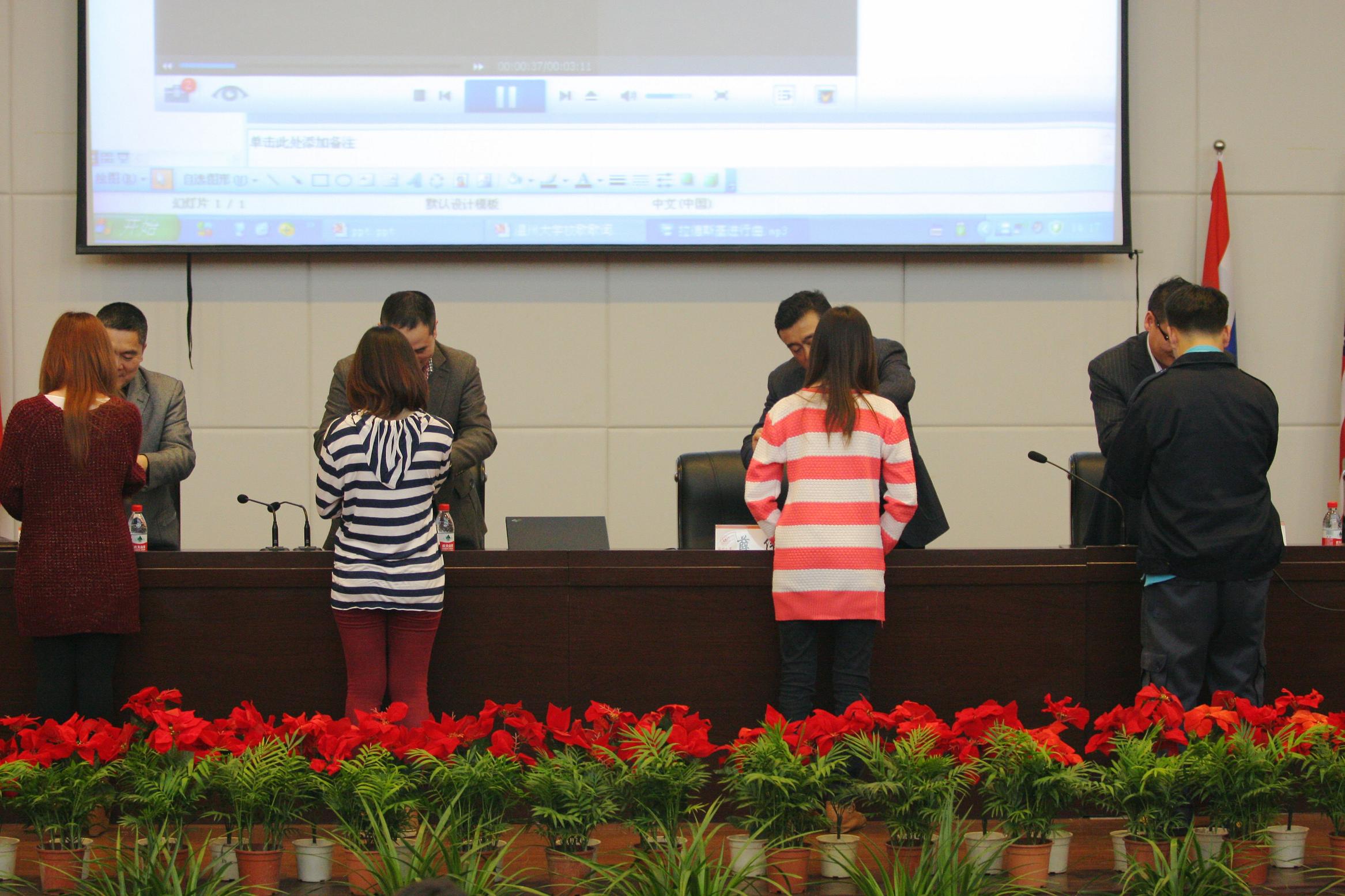 在庄严的国歌声中,典礼正式开始,首先由薛伟副校长致辞。在致辞中,副校长薛伟表示了对来自来自泰国、美国、荷兰、意大利等7个国家的50余名留学生新生的热烈欢迎,介绍了我校的基本概况以及近年来我校在国际教育与合作领域所取得的成果,并提出了对留学生的殷切希望和具体要求。他希望留学生在15vip太阳集团官网习期间,珍惜学习机会,学有所成,为传递中外友谊和交流文化贡献力量。 任课教师代表张丽丽副教授对留学生选择15vip太阳集团官网学习表示欢迎。她说,一年之计在于春,希望同学们好好学习,多交朋友。新生代表,来自泰国的黄秀云同学在随后的发言上表示:非常感谢学校给予自己这样宝贵的学习机会,并承诺将在未来的学习生活中,珍惜15vip太阳集团官网为留学生提供的良好学习环境,刻苦努力,通过学习汉语增进世界各国留学生间的友谊。最后,主席台嘉宾还为新生代表佩戴校徽,系上寓意祝福的红色丝带,典礼在雄壮的15vip太阳集团官网校歌声中结束。
