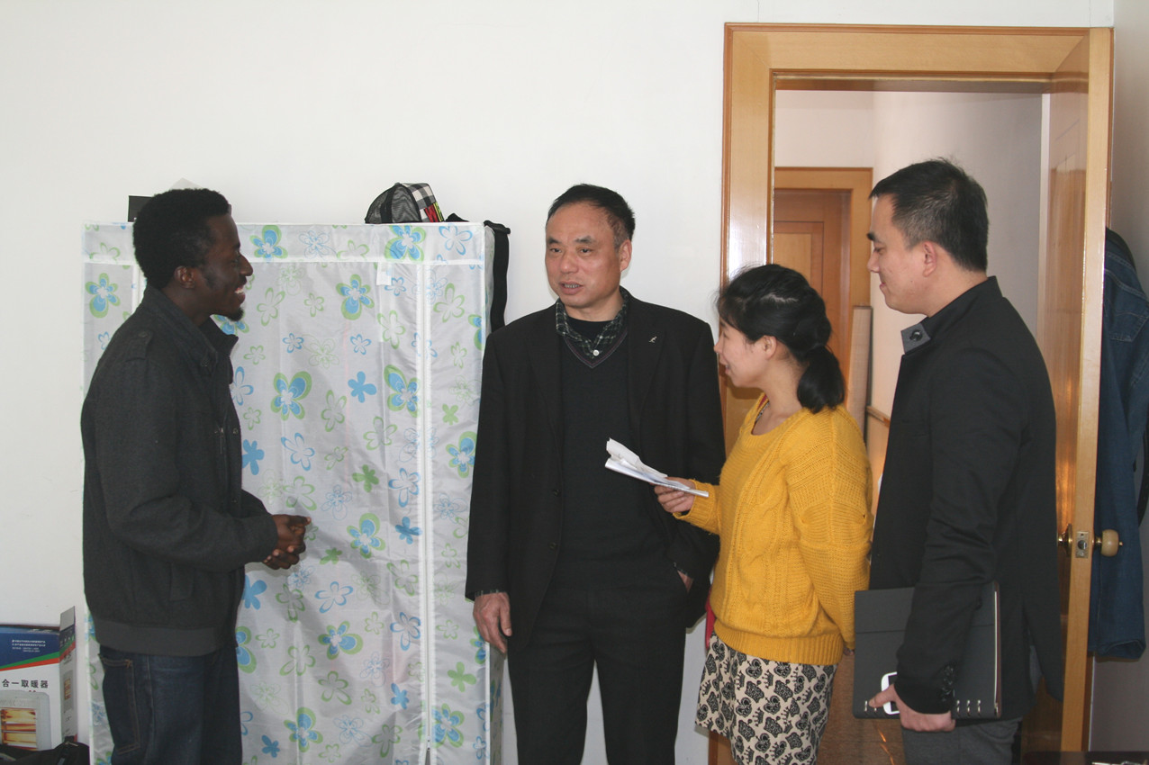 自开学以来,高教园区各类案件时有发生,特别是学生的校外住宿点,更是案件的高发地。我校有部分留学生在校外住宿,为了进一步做好他们的安全稳定工作,及时排除其中存在的隐患,近日,太阳官网党总支书记朱建平、保卫处相关人员等组成安全排查小组,对留学生校外住宿点进行了走访。
