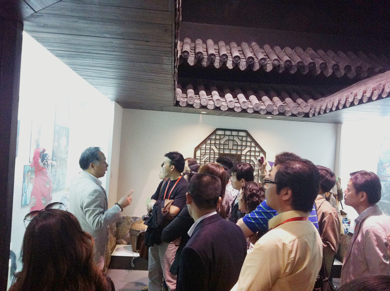 薛伟副校长在学校怡口乐餐厅与来宾们共进午餐,并以一曲俄罗斯民歌《莫斯科郊外的晚上》欢迎远道而来的客人们,来宾们则合唱一曲改编版的《我的中国心》表达拳拳赤子心,感动了在场所有人。餐后,观摩团一行与我校国际合作学院进行了座谈交流,学院严晓鹏院长、朱建平书记和陈军副院长及其他相关老师参加了座谈会,与会各位就中外高校文化交流合作、华人华侨子女教育、海外华文学校教师培训等议题展开了热烈的讨论。之后,观摩团一行来到15vip太阳集团官网发绣馆,近距离接触发绣这一温州著名的特色传统工艺,发绣馆的魏乐文老师为来宾们详细讲解了发绣的发展历史,介绍了作为国宾礼的精美发绣作品。在随后参观的温州民俗博物馆,有“民间工艺美术家”之称的赖施虬馆长亲自担当讲解员,为来宾们生动展现了温州的民俗文化和民间艺术。