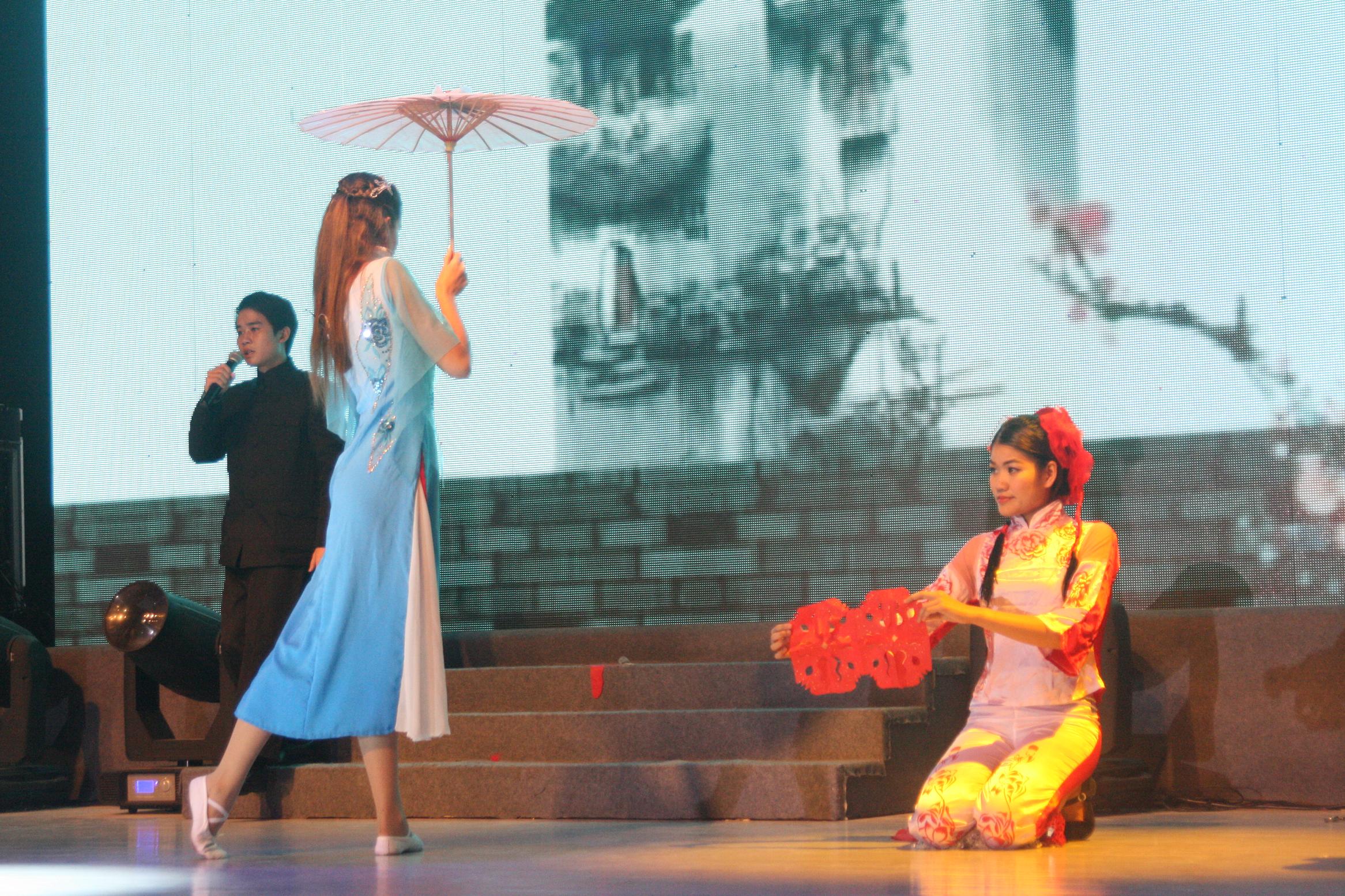 来自乌克兰、泰国和意大利等6名留学生参加了演出,他们表演的节目《雨巷》,以优雅的舞姿,标准的普通话,深情的朗诵,精彩地诠释了江南雨巷朦胧而又幽深的美感,赢得了在场嘉宾和各国留学生的一致好评,该节目还被选送参加了在杭城举办的“诗唱西湖”——庆贺西湖申遗成功一周年大型诗歌朗诵会。