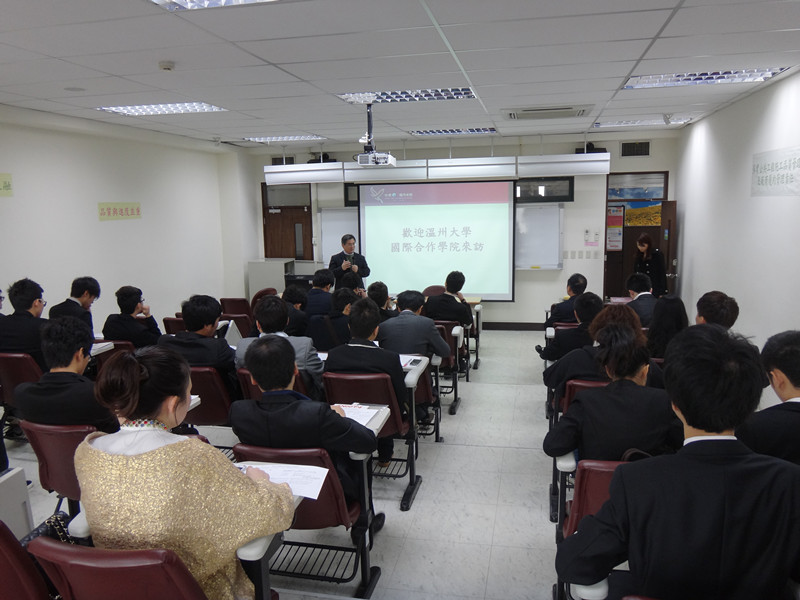直航拉近了两岸的距离,短短50分钟,太阳官网师生就已到达台北。中原大学两岸与国际交流处副国际长胡威志博士热情接待了师生团队,并就中原大学概况作了相应的报告。通过聆听报告,同学们对中原大学的办学历程、育人理念以及对外交流项目都有了一定的了解。随后,同学在相关老师的带领下详细参观了学生事务一站式办理大厅、学生活动中心、教师教学发展中心、艺术中心等凝聚中原大学办学理念和精巧构思的办公活动场所,每到一处,中原大学都设置了欢迎标语,并安排相关的负责人进行讲解。我校学生表现出极大的兴趣,总是迫不及待地与负责人交流、询问,并仔细地记录在案,他们对中原大学深邃的校园文化、温馨的人文氛围以及人性化的设施布局赞叹不已。