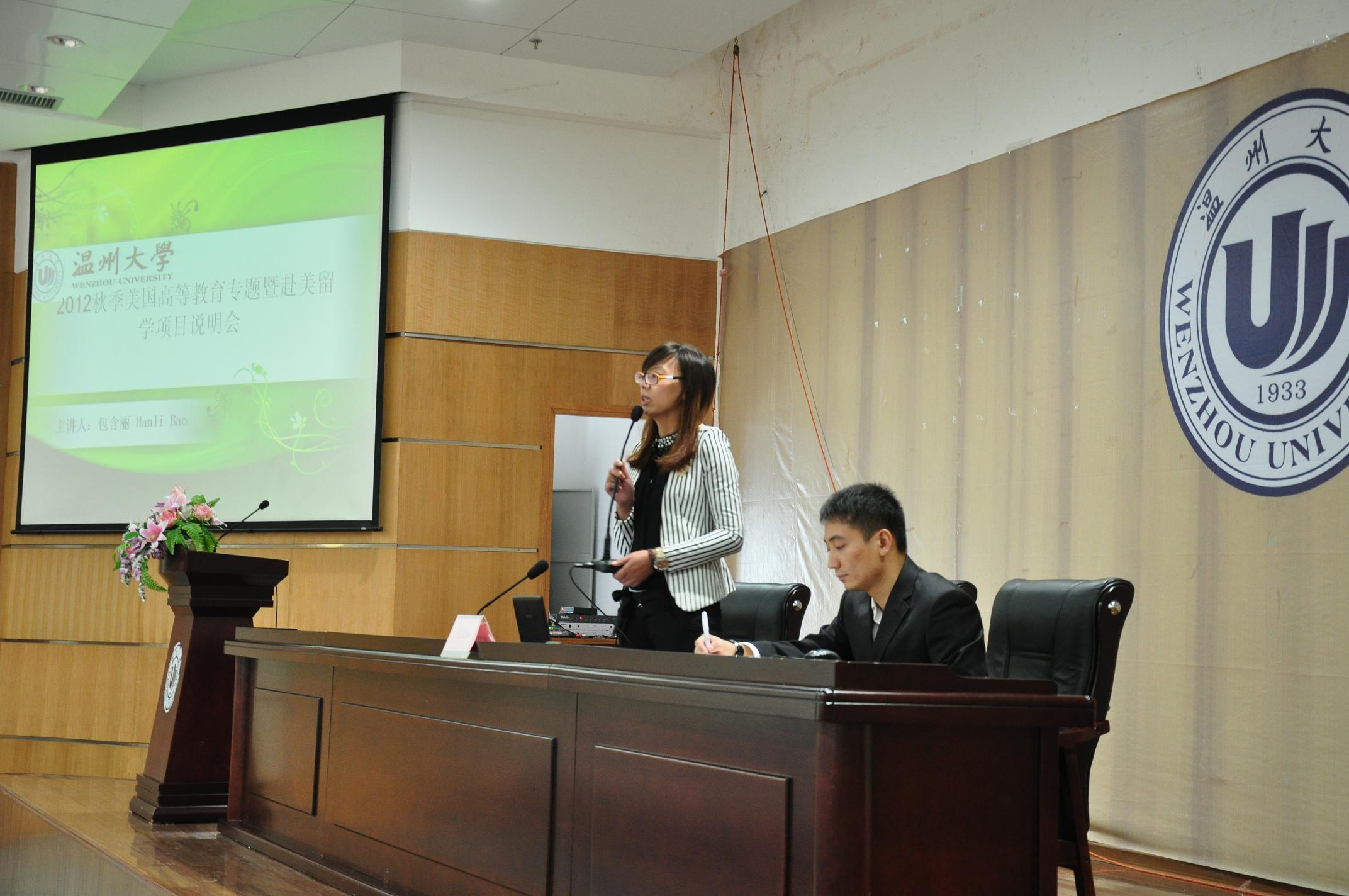 2012年11月7日下午, 太阳官网在北校区商学院报告厅召开 “2012秋季15vip太阳集团官网美国高等教育专题暨赴美留学项目说明会”。说明会由国际合作项目开发办公室主任、美国印第安纳访问学者包含丽老师主讲。