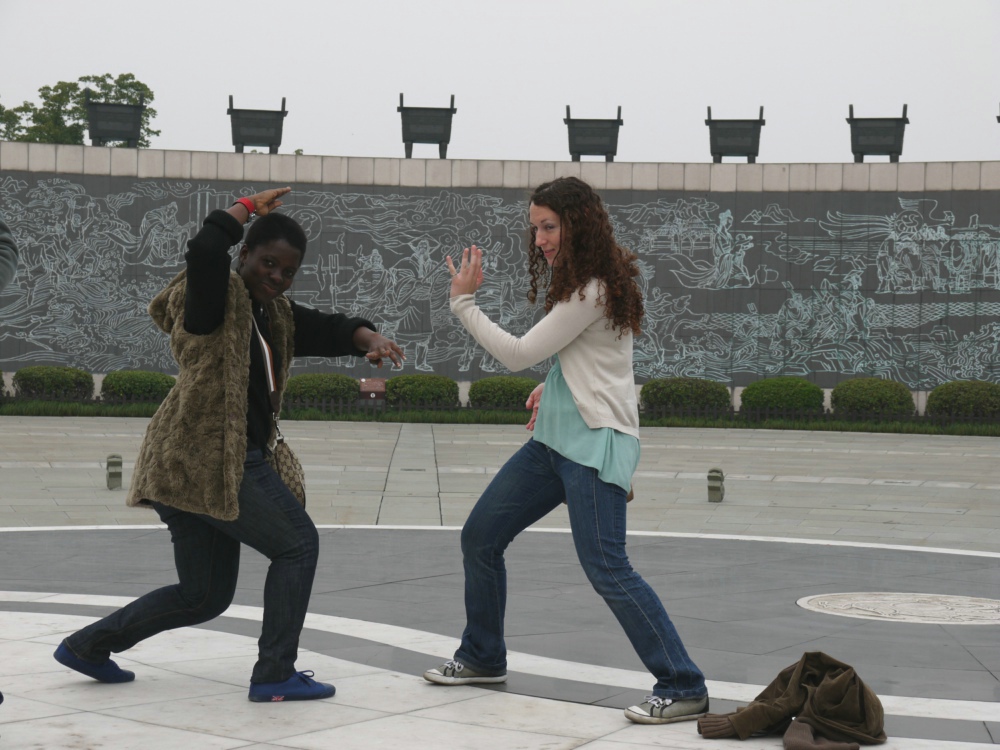在出发之前,副院长陈军就针对绍兴、义乌的文化商业特点给留学生们开了一场专题讲座,并布置了相关的任务和作业。留学生首站到达历史文化名城绍兴,参观我国现代伟大的文学家家鲁迅的故居。面对完全不同于平常在校园内看到的古屋,留学生们表现出对中国传统建筑的浓厚兴趣,纷纷拿出相机留影合照,表示要传回去给国家的亲人和朋友欣赏。在东湖,留学生们坐上乌篷船,看着带着无毡帽的船夫摇船,感受古时候的水上人家;参观大禹陵,聆听大禹神话;去兰亭感受王羲之狂草兰亭集序。留学生们兴致勃勃地摆出各种姿势,把功夫课上学到的各种功夫动作都留了相片中。