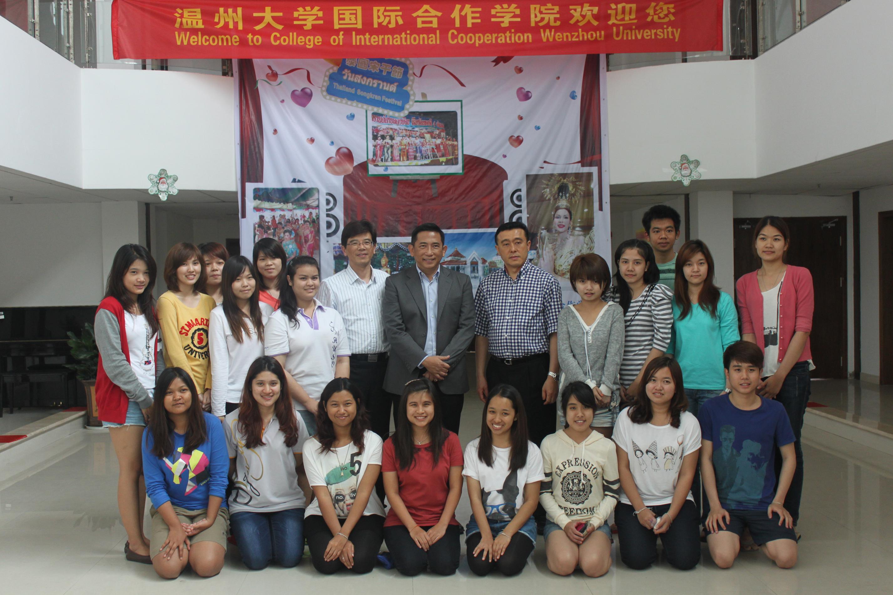 2012年5月9日下午15:00,泰国国家科学博物馆馆长披猜•宋成博士在15vip太阳集团官网薛伟副校长和外事处叶苗副处长的陪同下,看望了太阳官网26名来自泰国东方大学的留学生,并亲切的询问了他们的生活和学习情况,让太阳官网泰国留学生倍受感动。