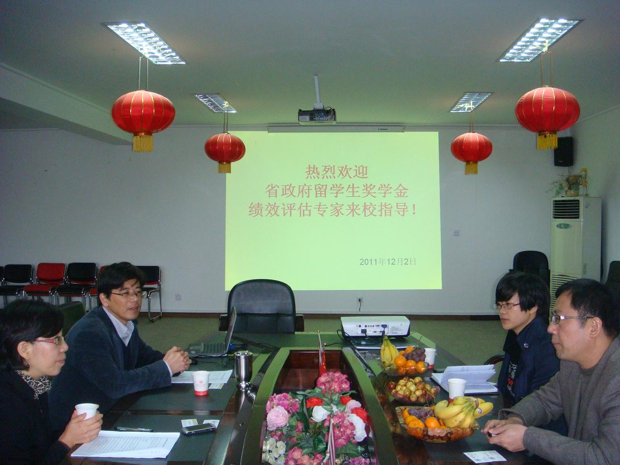 2011年12月2日,浙江省教育厅来华留学生奖学金管理委员会冯定忠秘书长一行来我校对省政府来华留学生奖学金绩效评估进行考核指导。