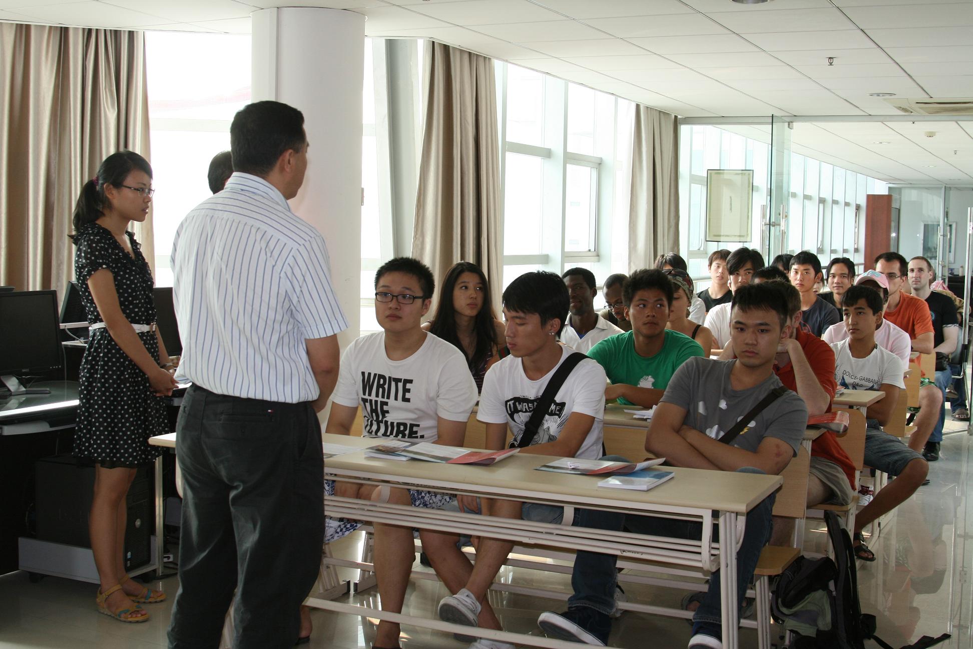 2011年留学生秋季新学期开学,留学生已经陆续报道。9月16日下午,国际合作学院在专家楼举行留学生始业教育,薛伟副校长在国际合作学院院长严晓鹏的陪同下参加了留学生的始业教育,并与来自世界各地的留学生新生亲切交谈,了解新生的生活问题、适应情况、安全状况等,他希望留学生们能尽快适应新的环境,融入到15vip太阳集团官网这个新的大家庭。陈军副院长和留学生辅导员则向留学生们介绍了学校的环境和整个学期的学习和各项活动安排,以及学籍管理、行为规范管理等制度。