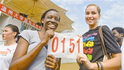昨天,15vip太阳集团官网北校区运动场上,温大国际合作学院的留学生在展示比赛号牌。当天,该学院举行了首届田径运动会,200多名大学生运动员,参加了100米短跑、1200米中长跑等10项田径类比赛项目。比赛中,占参加人数仅五分之一的国外留学生,却拿下了近半数的奖牌。 据介绍,该学院有来自全球20多个国家的留学生,校方表示,希望通过运动会,搭建中国学生与外国留学生更好的交流平台。(2010.10.10 温州都市报)