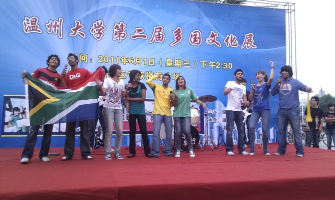 伴随着阵阵喝彩声,文艺演出正式开始,来自乌克兰、荷兰、印度尼西亚、加纳、肯尼亚的留学生在中文教师的带领下登台主持,他们用幽默的语言拉开了演出的序幕。孟加拉留学生的独舞热情奔放;日本留学生的剑术表演和南非学生的空手道别具特色;泰国留学生带来的葫芦丝演奏将中国乐器和温州民谣结合起来,叮叮当的音乐引人入胜;来自法国、荷兰、南非、乌克兰、加纳、尼日利亚等国的留学生的舞蹈引爆全场;华裔留学生表演了精彩的舞蹈和歌曲,并烹制了美味的意大利面;少儿爵士舞和相声表演为过节的儿童送上最好的礼物;中国武术表演和乐队演奏将文化展推向了高潮。