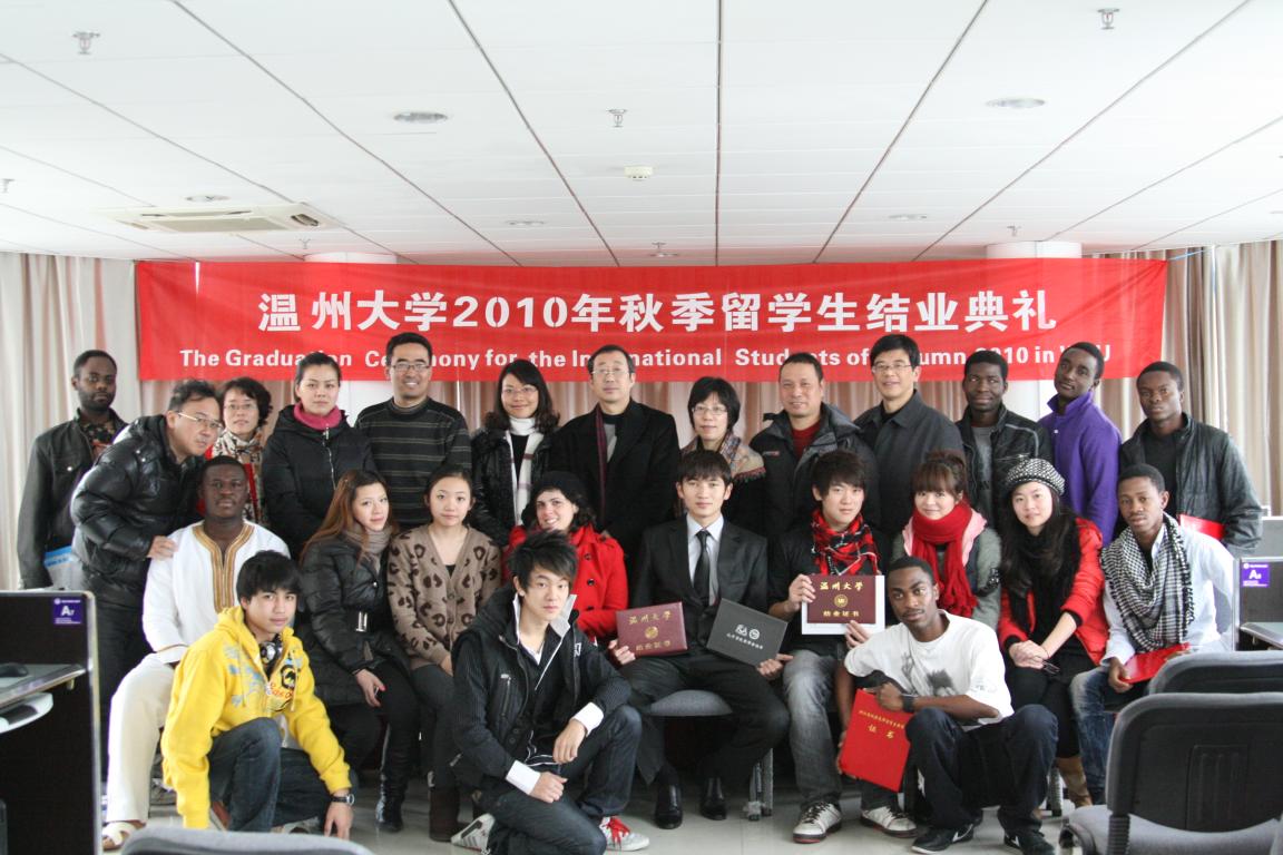 1月14日,15vip太阳集团官网2010年秋季留学生结业典礼在南校区专家楼隆重举行。外事处副处长叶苗教授出席仪式并致词,太阳官网院长严晓鹏、副院长陈军出席典礼,党总支书记方建敏主持。