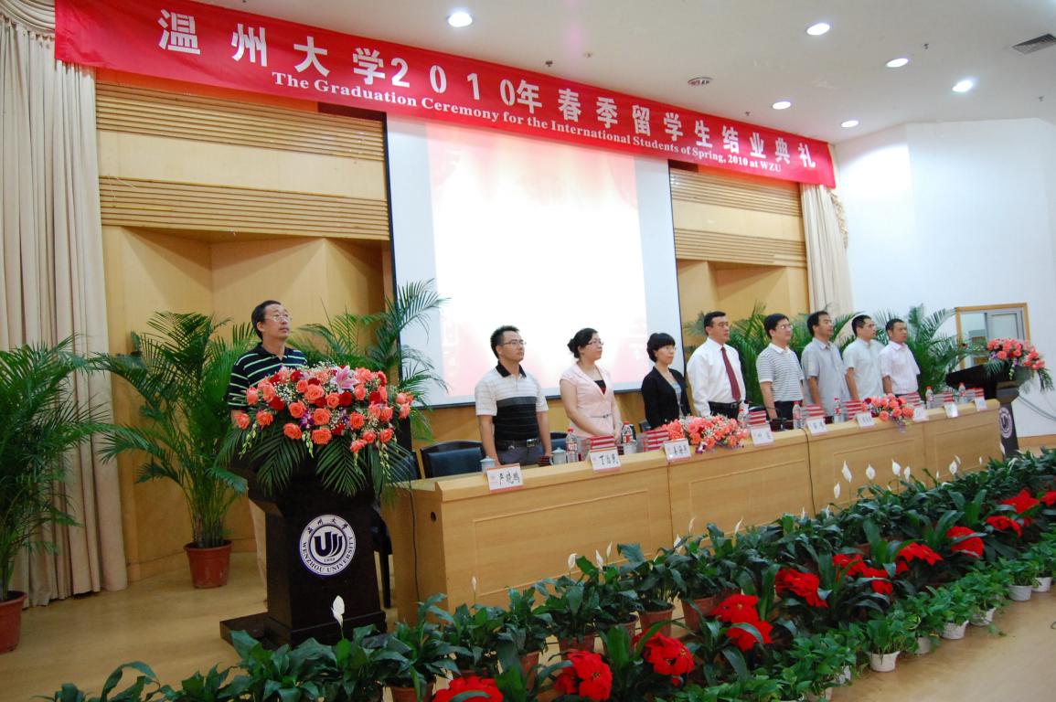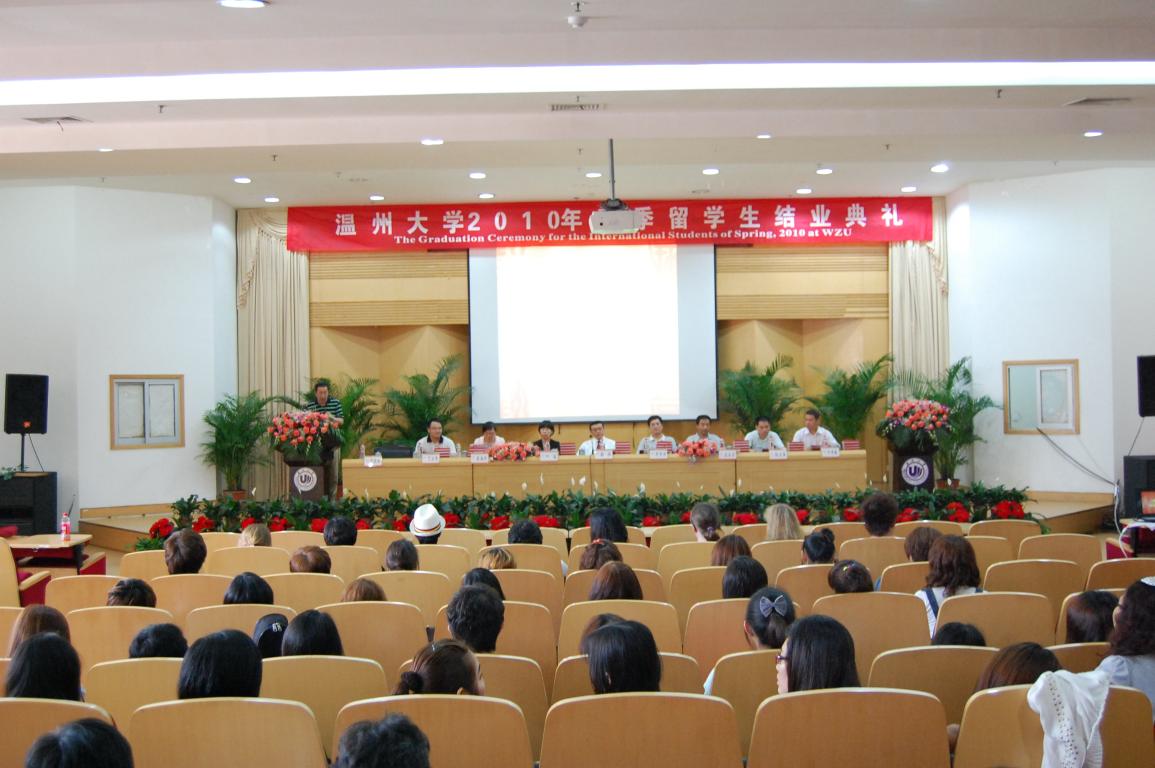 7月1日下午,15vip太阳集团官网2010年春季留学生结业典礼于南校区雁山厅隆重举行。副校长薛伟教授出席。外事处、教务处、学生处、校友办公室、团委、人文学院、国际合作学院等部门学院的领导、留学生授课教师代表以及来自泰国、日本、伊朗、西班牙、意大利、荷兰、肯尼亚、南非、加拿大、俄罗斯等10个国家的50余名留学生参加了结业典礼。结业典礼由国际合作学院院长严晓鹏主持。