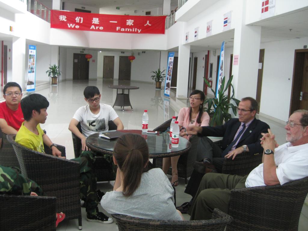 2010年9月9日,美国加利福尼亚州立大学东湾分校国际部主任RAY WALLACE及该校音乐学院教授FRANK LA ROCCA来访太阳官网。院办主任、项目开发办主任包含丽及相关人员热情会见客人。