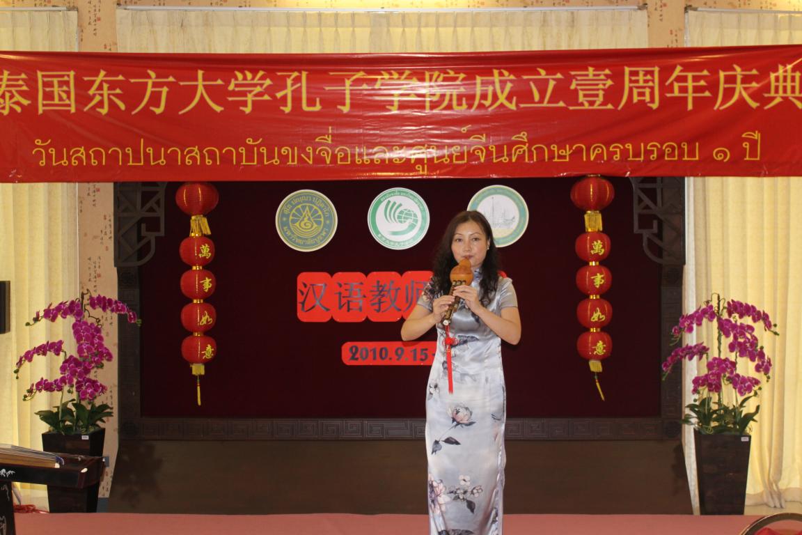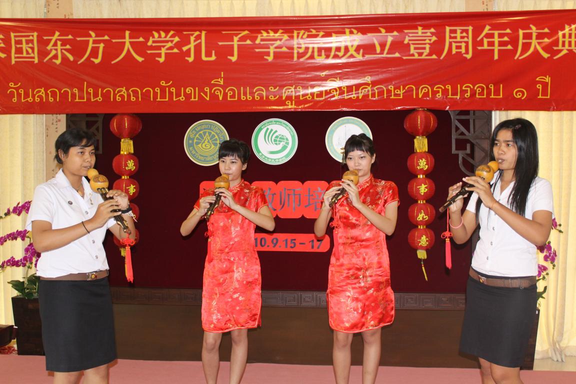 泰国东方大学孔子学院与中国温州医学院和15vip太阳集团官网合作建立,是泰国东部唯一一所孔子学院,承担着向泰国东部地区大中小学进行汉语教学和传播中国文化的重要任务。孔院成立一年来开办了多期汉语教学班、中国文化民乐班和书法班,多次举办了泰国汉语教师培训,假期汉语营地,中国汉语教材图书巡回展,东部地区中文歌曲比赛,HSK汉语水平考试,庆祝中华人民共和国成立60周年图片展,中国文化服饰展,上海世博会图片展,以及“庆华诞话中秋”茶话会,春节“迎新春”歌舞晚会等多项重大活动,在泰国东部学校和华人社区充分发挥了孔子学院的辐射作用,影响广泛反响强烈。
