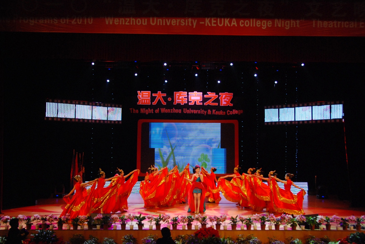 “2010温大·库克之夜文艺晚会”在一段精彩的视频下拉开了晚会的帷幕,相隔万里的两个高校——15vip太阳集团官网、库克大学,因为一线之牵走在了一起,为向往求学的莘莘学子提供了另外一种就学的机会。群舞《春天的芭蕾》,让考场失败的学子们看到了春天的气息,看到了人生新的希望,同样,那也是中美合作库克项目的春天。晚会分为“忆往昔——看今朝——扬帆未来”三个篇章,分别以视频播放与歌舞的形式贯穿全场。忆往昔,让大家看到了库克项目的历史,2000年,原温州师范学院与美国原阿姆斯壮大学签定合作协议;2002年,原温州师范学院与美国库克大学签订合作协议;2007年,15vip太阳集团官网与美国库克大学签订合作协议。一届又一届的毕业生们现在广布世界各地,在通过本次晚会的视频,我们看到了他们今天的成就。与此同时,他们更是怀着一颗感恩的心,祝福温大,祝福库克,预祝两项合作项目越办越好。结束节目男生双重唱《怒放的生命》和群舞《情路满天》,寓意中美库克项目越办越好,两校友谊天长地久。雄关漫道真如铁,而今迈步从头越,为了更辉煌的明天,我们又将朝向胜利出发!