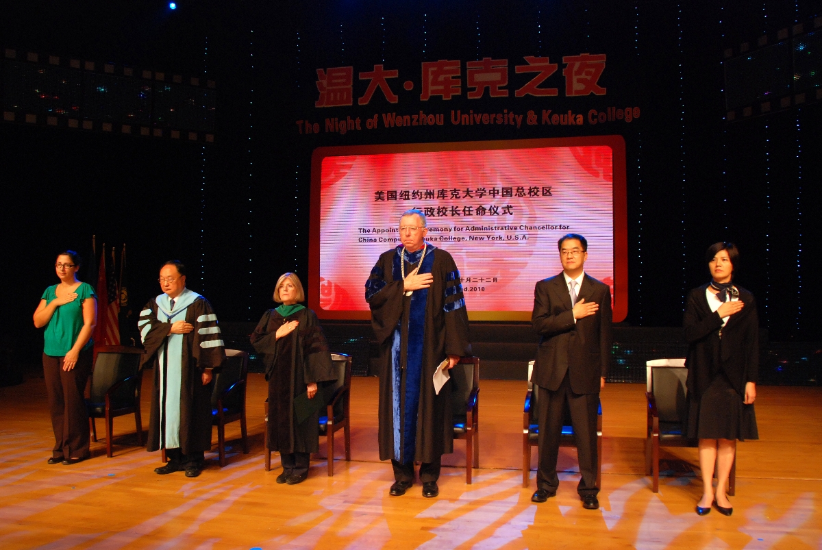 晚会之前进行了简短的“黄天中博士荣升为美国纽约州库克大学中国校区行政校长的任命仪式”,库克大学董事长Melissa Brown博士、库克大学校长Joseph Burke博士亲自为黄天中博士颁发了任命书。颁发任命书完毕后,黄天中校长发表了就任感言。他先进的教育理念受到台下千名师生阵阵掌声。他说,人不能只看一次的成绩,一次的失败不等于永远的失败。曾几何时,他并不是大学里面最优秀的,母亲的一句话让他备受鼓舞,他有自己的奋斗目标,而且他一直在向这个目标努力着。现在,身为人父的他,用同样的方法培育出了优秀的子女。“别看我一时,且看我一世”的理念在同学们的脑海中回荡不惜,相信,那必将激励更多的同学向自己的目标去不懈努力。