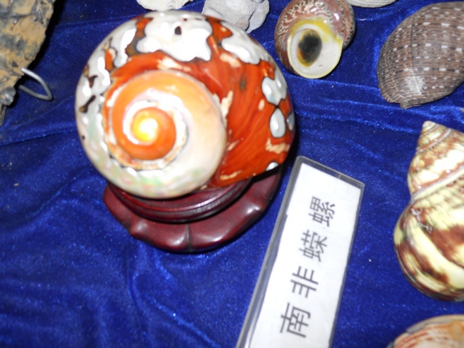 在参观过程中,苏老先生着重介绍了鹦鹉螺的仿生学原理,使同学们明白了鹦鹉螺的空气动力学构造和螺旋形受力结构。并介绍了左旋螺的宗教学和生物学意义,其价值与等重的黄金相当,这点着实让大家有瞠目结舌之感。而有“螺中皇后”之称的南非蝾螺的特殊外露珍珠层,更是让大家心驰目眩。在苏老先生声情并茂的讲述中,不时会传来大家阵阵会心的笑声和讶异的赞叹声。整场参观给中外带来了极大的震撼和视觉享受。