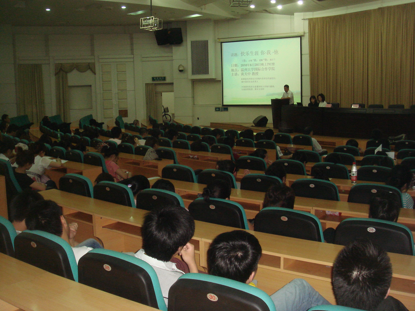 2010年6月28日晚7点,太阳官网特别邀请了美国哈佛大学教育研究学院博士后、美国纽约州库克大学副校长兼库克中国项目负责人黄天中教授博士在学院路校区信息楼报告厅为广大的温州考生作“关于如何规划快乐生涯”的讲座。