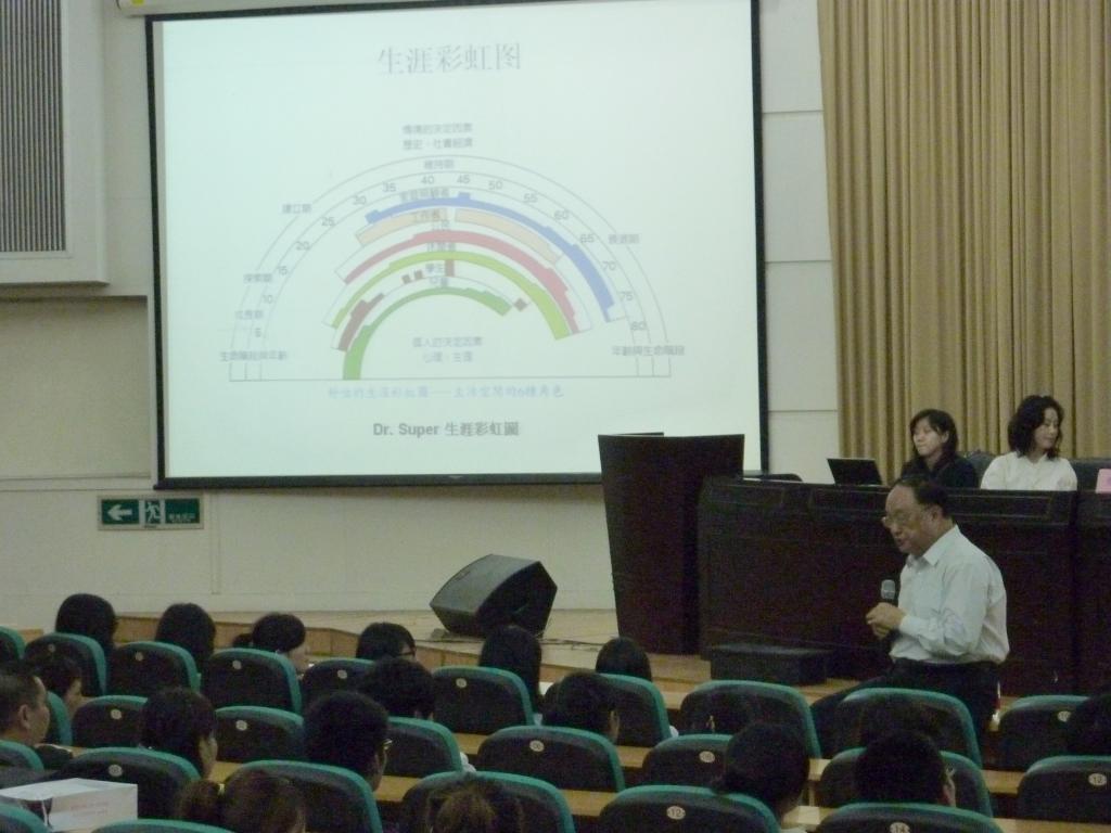 博学的黄天中教授在讲座中从中西两种教育模式的比较下,从父母如何了解学生、老师如何了解学生、考生如何规划自己的人生几个角度介绍了生涯规划与体验学习的重要性。他以自己生涯经历为例教育考生们要走自己的路,认识自己、看清自己、活出自己。同学们必须学会快乐生活,快乐付出,学会选择适合自己应该拥有的,高考并不是人生最大的考试,人生没有失败的人,只有放弃的人。他还详细介绍了下快乐生涯的“探索快乐生命、掌握快乐生存、品味快乐生活、参与快乐生涯”四种模式和生涯规划中必须具备的8个重要习惯:积极主动(be proactive)、以始为终(begin with end in mind)、要事第一(put first things first)、利他利我、知彼解己、综合绩效、不断更新、做好的聆听者。