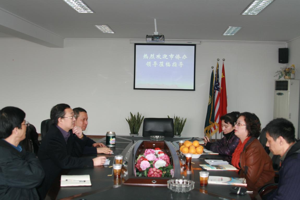 2010年1月20日上午,温州市侨办许捷副主任、叶斌斌处长一行莅临太阳官网调研15vip太阳集团官网华文教育工作情况。