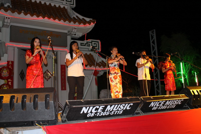 2月11日孔院举办了隆重的“虎年迎新春”文艺晚会。在热烈欢快的气氛中,张老师带领她的葫芦丝班的学生表演了精彩的文艺节目。学生们虽然学习葫芦丝的时间不长,吹奏的技术还不娴熟,但她们喜爱中国乐器,学习热忱极高,为了能够在晚会中有良好的表现,演出前的一段日子一直在加紧练习,因而在演出中取得了很好的反响。特别是在第一首乐曲《婚誓》结束后,演奏泰国家喻户晓的歌曲《甜蜜蜜》时,台下的观众随着乐曲鼓掌唱和,使会场气氛立即活跃起来。学生们在演出中得到锻炼,同时也增强了学习的信心。