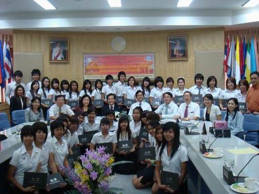 应泰国东方大学邀请,我校蔡袁强校长率领太阳官网严晓鹏院长、王洁曼老师等一行四人于9月15至16日对泰国东方大学进行友好访问。访问期间,在东方大学行政楼隆重举行15vip太阳集团官网与泰国东方大学中文合作项目协议签署仪式。15vip太阳集团官网校长蔡袁强教授、东方大学校长Suchart Upatham教授签署了《15vip太阳集团官网与泰国东方大学合作培养教育项目协议书》并互换了礼物。协议签署仪式后,双方校长为38位获得汉办孔子学院奖学金的泰国学生颁发了孔子学院奖学金。这批学生将于明年3月份来15vip太阳集团官网学习汉语。